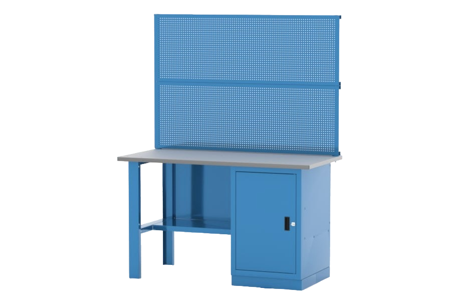 Однотумбовый верстак, тумба с дверцей, с двумя перфорированными панелями.