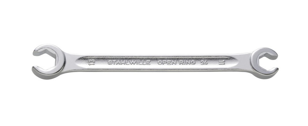 Разрезной двойной накидной гаечный ключ STAHLWILLE OPEN-RING серии 24 с шестигранником, размер 5/16" х 3/8". Выкован из высококачественной легированной хромом стали, полностью хромирован. Профиль AS-Drive® обеспечивает высокую передачу усилия без повреждения крепежа. Усилие передается на плоские грани гаек и головок болтов, а кромки граней остаются свободными и не округляются. Выдерживает экстремальные нагрузки, отличается чрезвычайной долговечностью. Благодаря двутавровому профилю обладает высокой прочностью на изгиб при малом весе, а также удобной для удерживания поверхностью, не режущей руку. Контактная поверхность ключа обработана так, что он удобно лежит в руке, даже когда используется в течение длительного периода времени и когда к ключу прикладывается значительное усилие.